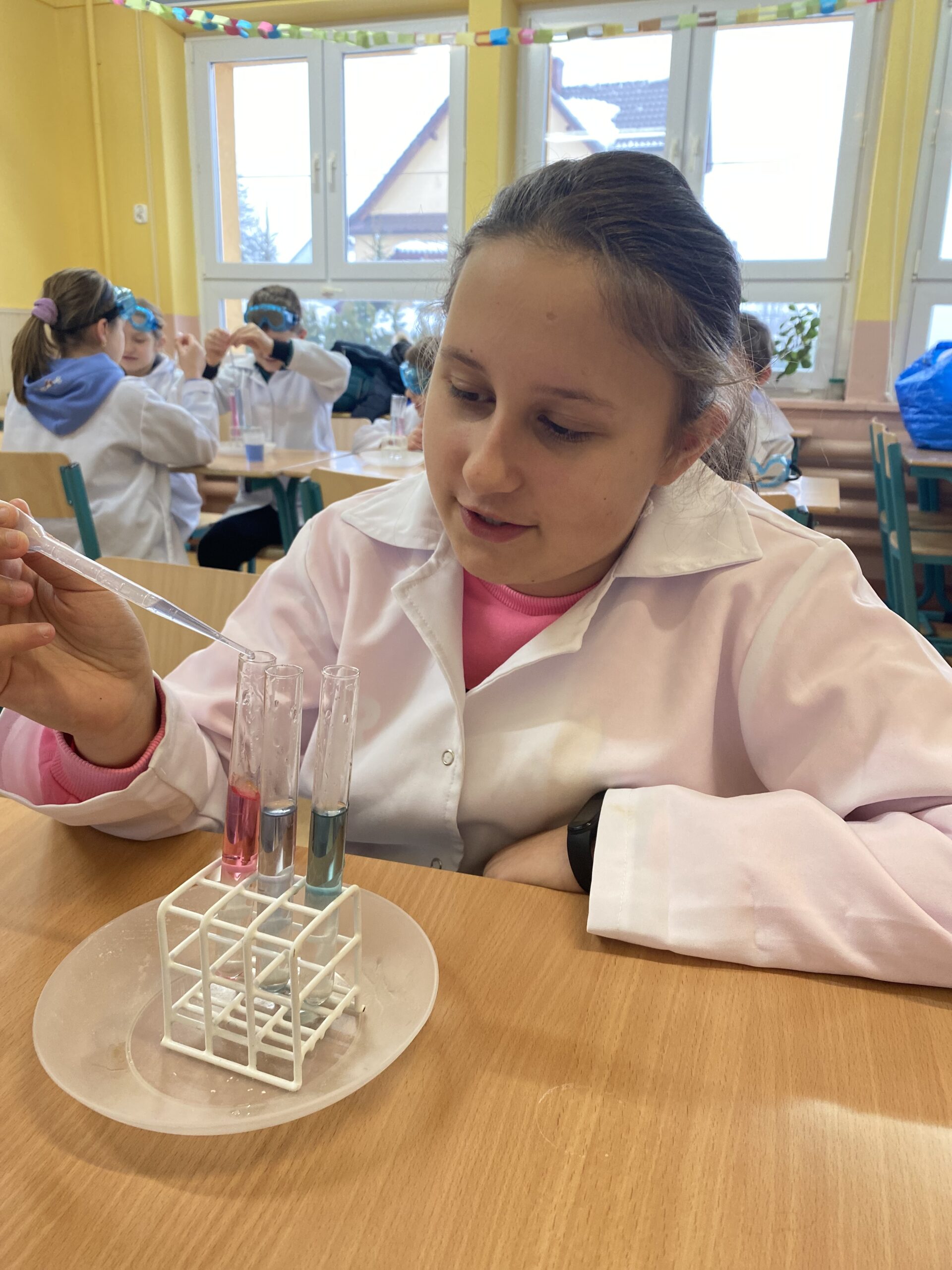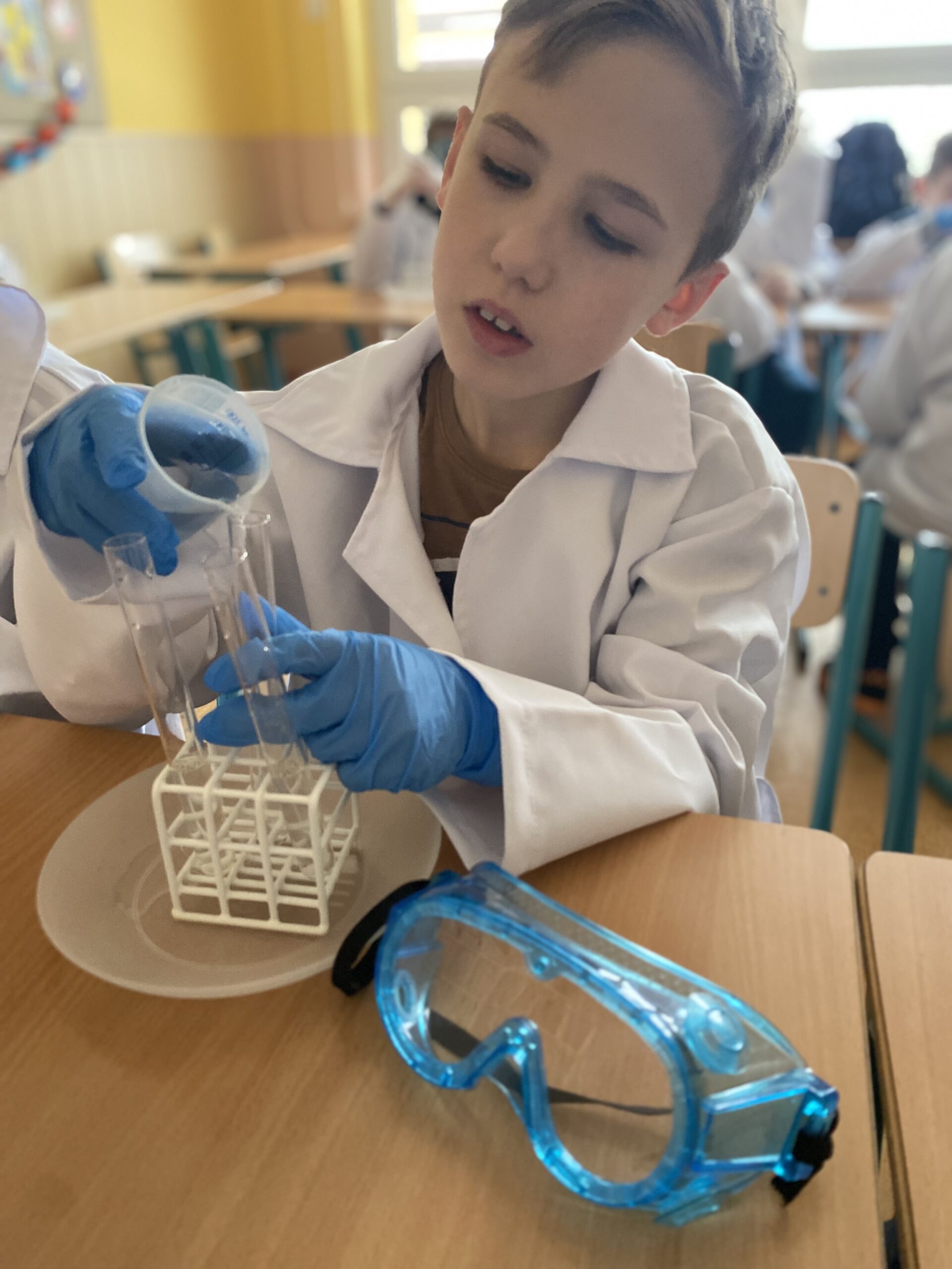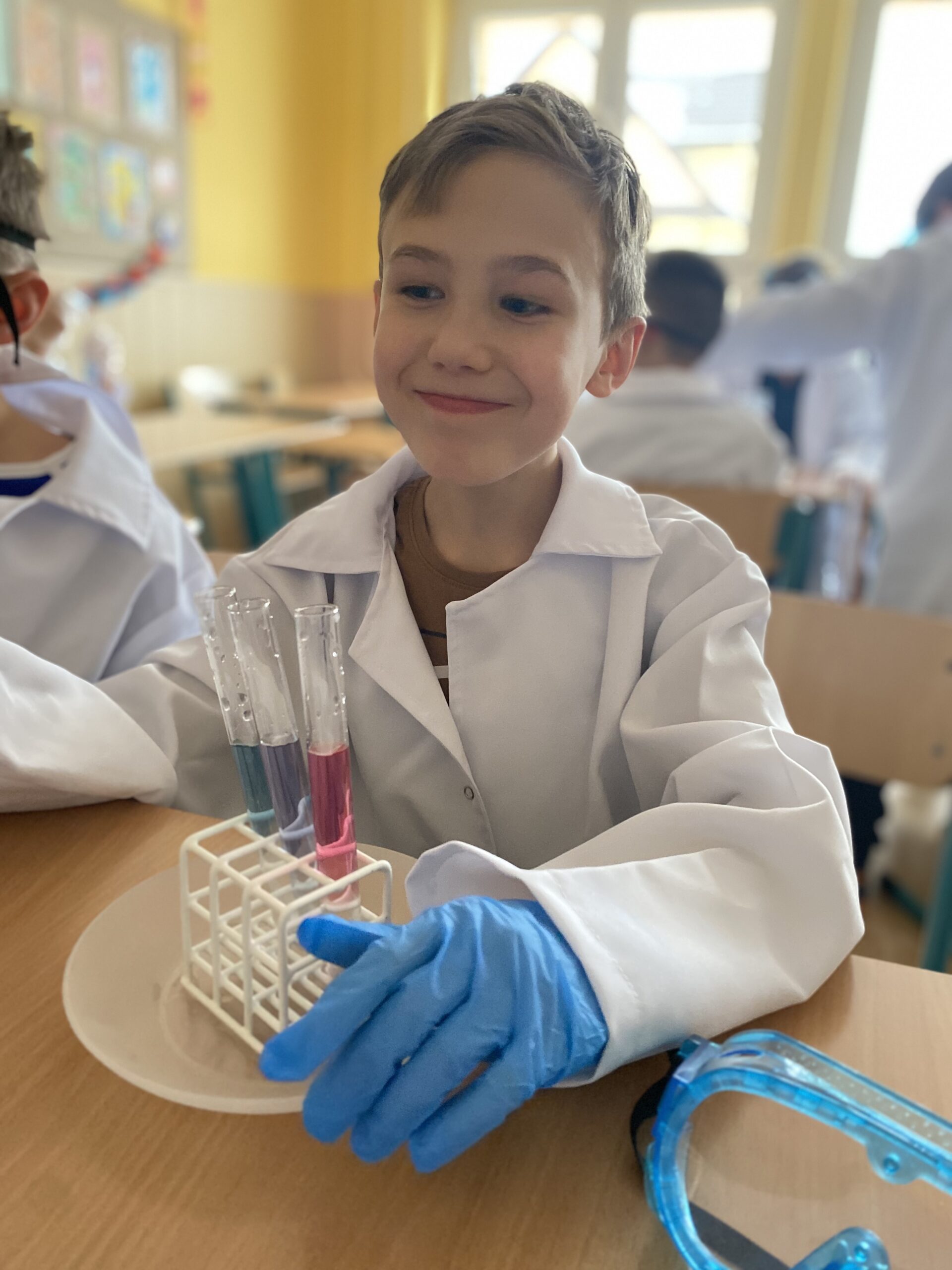 W ramach działania zorganizowano po 10 spotkań dla dwóch grup wiekowych (pierwsza to uczniowie klas III – V oraz druga dla uczniów klas VI – VIII). Łącznie w warsztatach chemicznych brało udział 40 uczniów. Zajęcia pozalekcyjne zmieniły postrzeganie chemii jako sztywnej, nudnej i trudnej nauki w coś całkowicie nowatorskiego. Pod okiem wykwalifikowanych fachowców z firmy Chemical World dzieci miały okazję samodzielnie przeprowadzić eksperymenty chemiczne i wziąć udział w pokazach. Każde zajęcia praktyczne były poprzedzone ciekawostkami dotyczącymi danego tematu oraz przybliżone zostały postaci słynnych chemików i przedmioty ich prac.